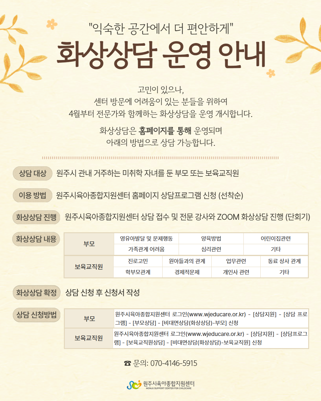¿øÁÖ½ÃÀ°¾ÆÁ¾ÇÕÁö¿ø¼¾ÅÍ ¹× ºÐ¼Ò(üÇè½Ç)ÀÇ À§Ä¡, ÀüȹøÈ£¸¦ ¾È³»Çص帳´Ï´Ù.