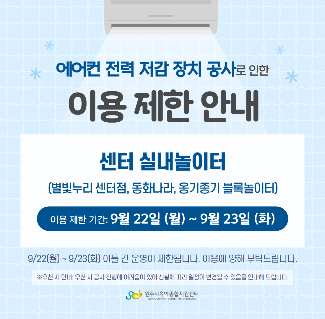 ¿¡¾îÄÁ Àü·Â Àú°¨ ÀåÄ¡ °ø»ç·Î ÀÎÇÑ ÀÌ¿ë Á¦ÇÑ ¾È³» (¼¾ÅÍ ½Ç³»³îÀÌÅÍ)