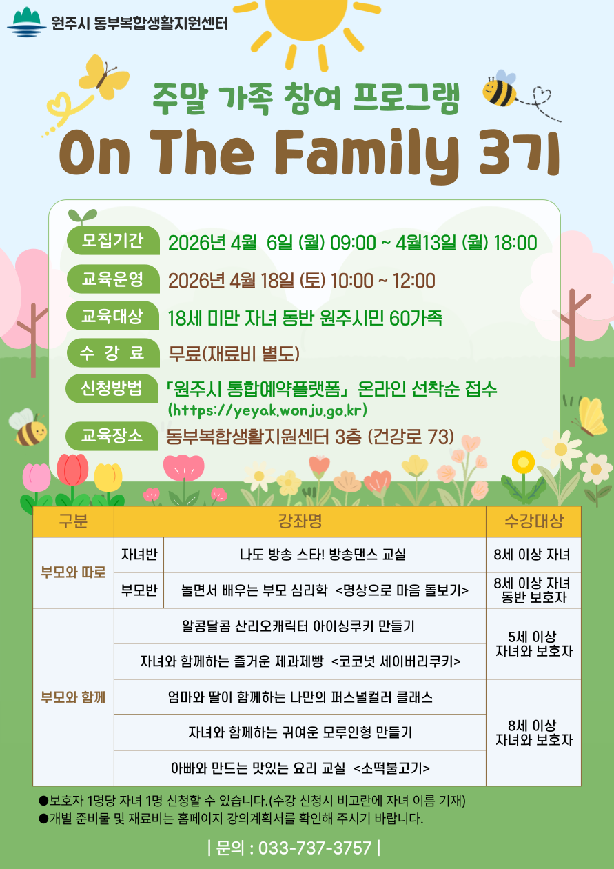¿øÁֽà µ¿ºÎº¹ÇÕ»ýȰÁö¿ø¼¾ÅÍ¿¡¼ 2026³â ÁÖ¸» °¡Á· ÇÁ·Î±×·¥ On The Family 3±â ¼ö°»ýÀ» ¸ðÁýÇÕ´Ï´Ù.