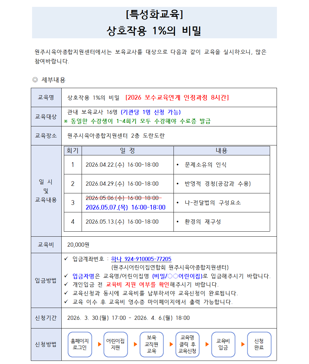 | ±³À°±â°£ | 2026-04-22(¼ö) 16½Ã00ºÐ ~ 2026-05-13(¼ö) 18½Ã00ºÐ | ||