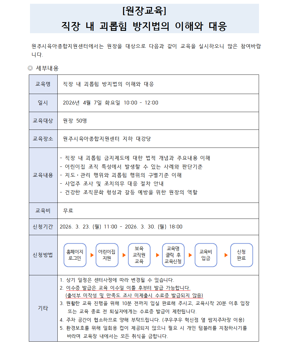| Àå¼Ò | ¿øÁÖ½ÃÀ°¾ÆÁ¾ÇÕÁö¿ø¼¾ÅÍ ÁöÇÏ °´ç | ||