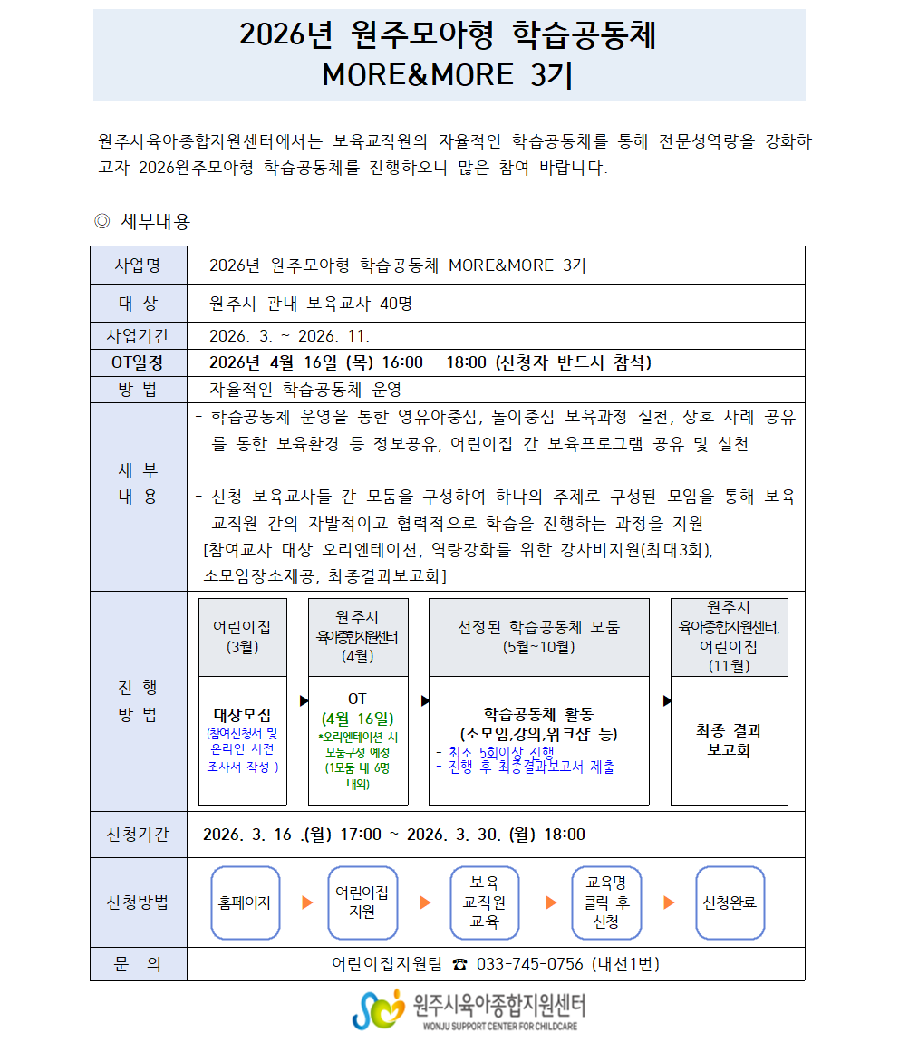 | 2026³â ¿øÁÖ¸ð¾ÆÇü ÇнÀ°øµ¿Ã¼ more&more 3±â ¸ðÁý | |||